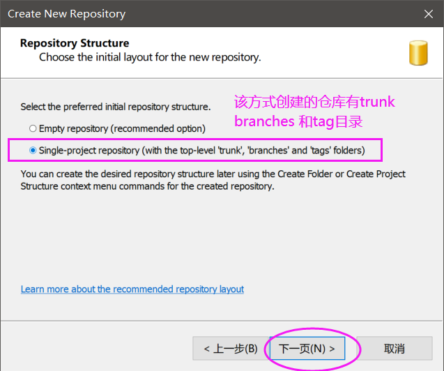 3、创建tag目录操作,相当于把当前的代码版本,复制一份到其他地方,然后以这个地方为出发点进行新的开发,与原来位置的版本互不干扰。