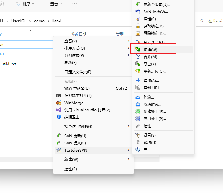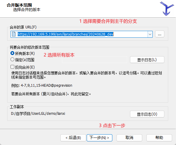 Working copy(工作副本):即你当前的工作目录,一般默认为这个选项;