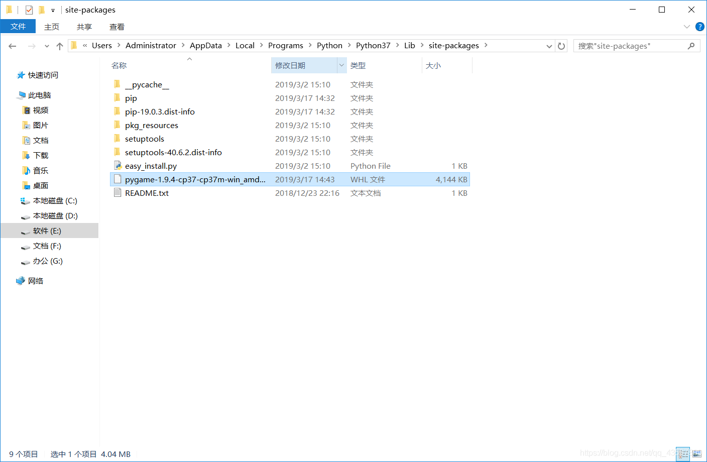 输入pip install pygame-1.9.4-cp37-cp37m-win_amd64.whl(这个是你下载的版本名)