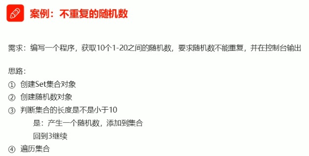 需求:编写一个程序,获取10个1—20之间的随机数,要求随机数不能重复,并在控制台输出