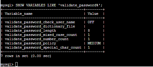 5)validate_password_policy 指定密码的强度验证等级,默认为 MEDIUM;