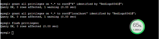 最后,还要修改一下权限,根据个人需求,设置数据库用户在所有ip下以及在本地可访问,以下用root用户做演示。