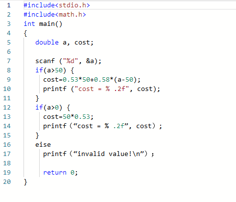 利用使用if--else语句实现三分枝结构,Fanally,用printf()函数输出。