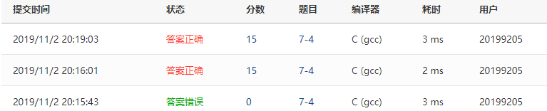 2,部分正确:第十一行的for语句中i没有累加,然后居然是部分正确。