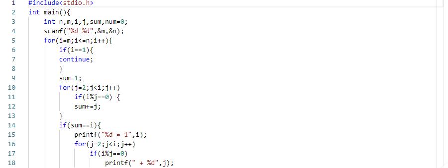所谓完数就是该数恰好等于除自身外的因子之和。例如:6=1+2+3,其中1、2、3为6的因子。本题要求编写程序,找出任意两正整数m和n之间的所有完数。