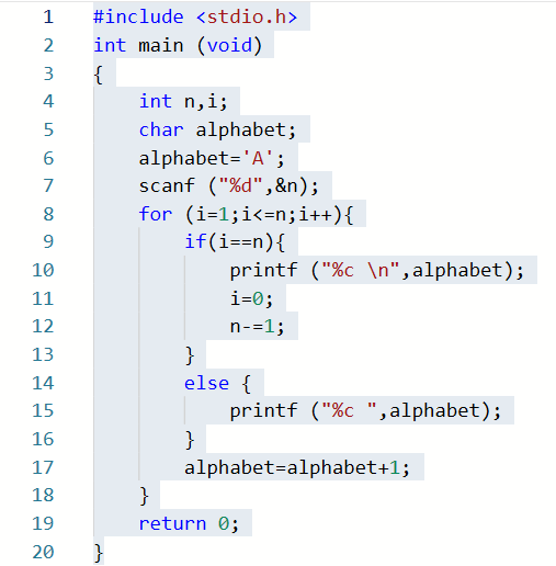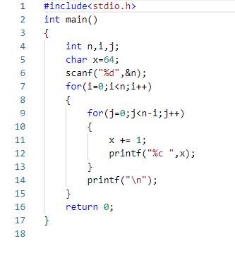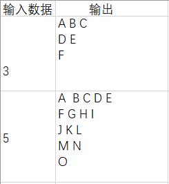 本题要求编写程序,输出n行由大写字母A开始构成的三角形字符阵列。