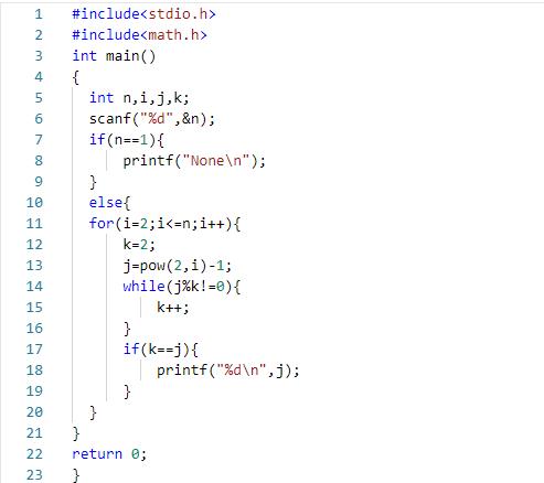 形如2n−1的素数称为梅森数(Mersenne Number)。例如2