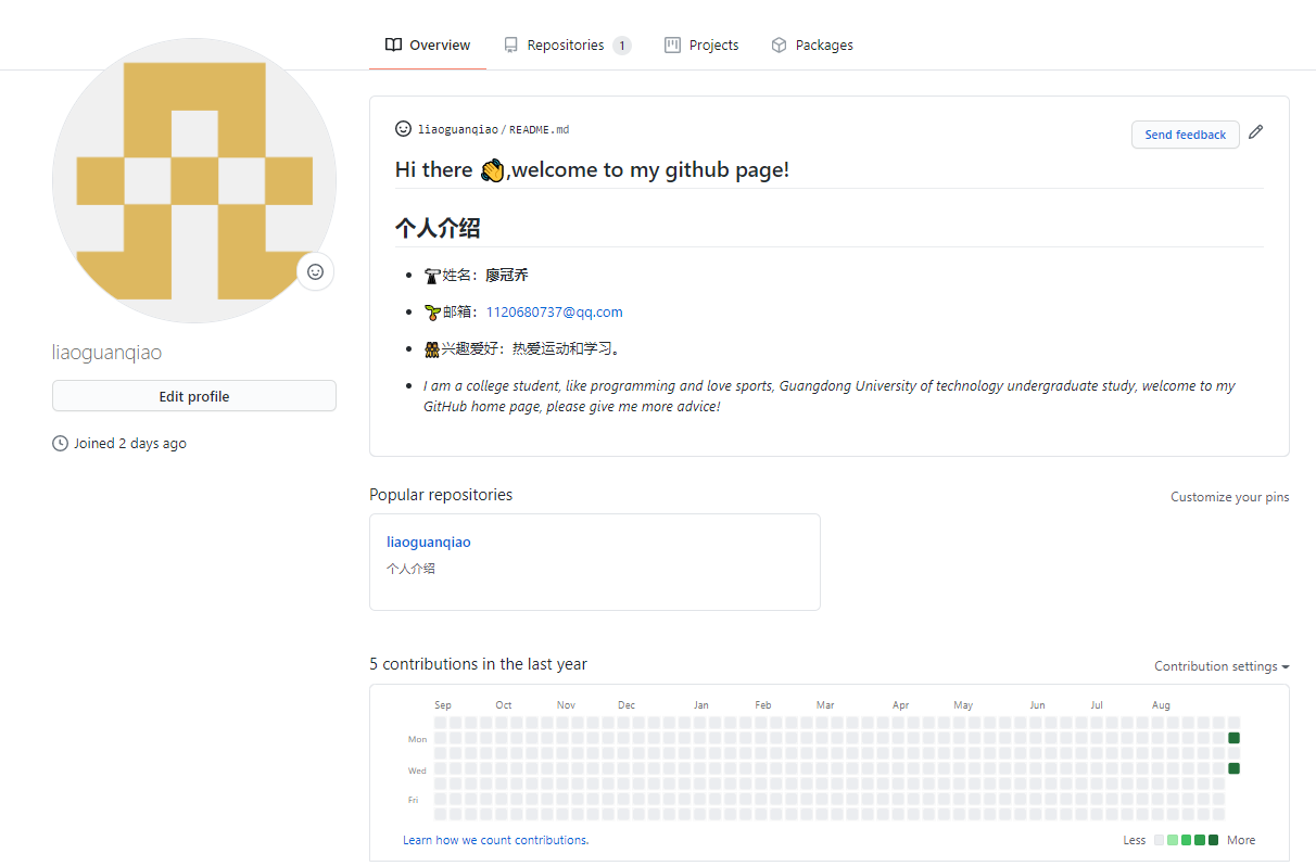 I am a college student, like programming and love sports, Guangdong University of technology undergraduate study, welcome to my GitHub home page, please give me more advice!