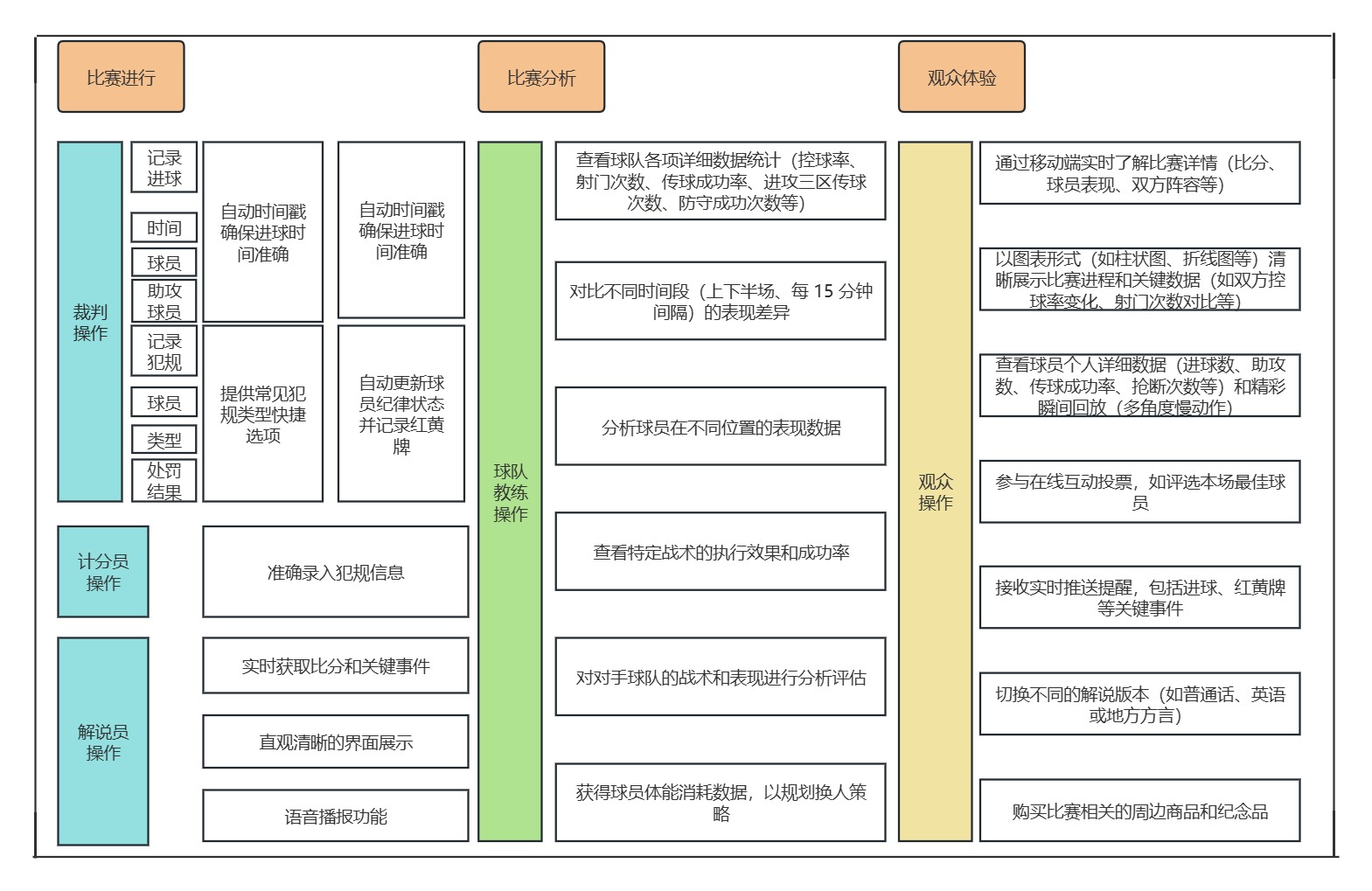 作为一名足球比赛组织者,我希望有一个可靠的计分系统,能够准确记录比赛中的进球、犯规和红黄牌情况,以便及时向观众和球队展示比赛结果。