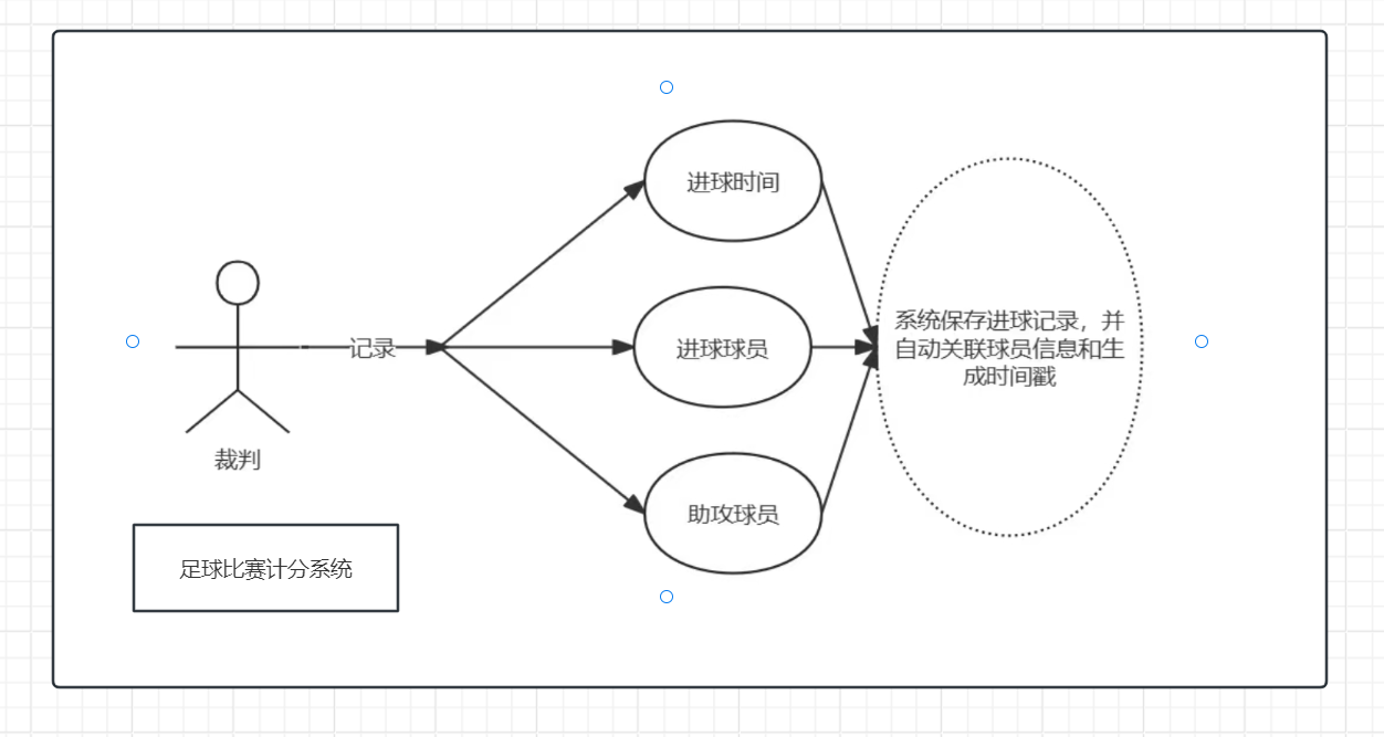 1. 作为裁判,我能通过计分系统轻松记录比赛中的进球时间、进球球员和助攻球员。