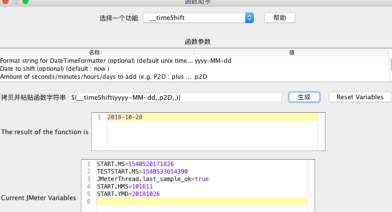 e.g.:${__timeShift(yy-MM-dd,2018-10-26,P2D,,)}这种返回的时间就是2018-10-28