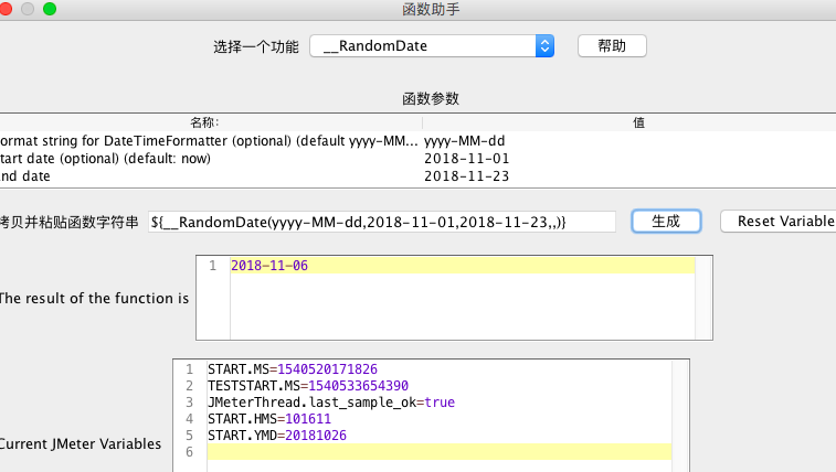 e.g.:${__randomDate(yyyy-MM-dd,2018-10-01,2018-10-30)},这种函数就会自动返回20181001-20181030之间的一个日期