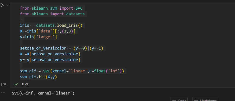 svm_clf = SVC(kernel='linear',C=float('inf'))