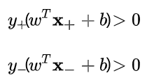 其中x+为正样本点,x-为负样本点,而正负样本对应的标记值为