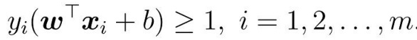 SVM中,分隔超平面是一个能够将正负样本恰好隔开的超平面,并且使得正样本在分隔超平面“上方”,负样本在分隔超平面”下方“。这就意味着,分隔超平面中的需要满足以下条件:
