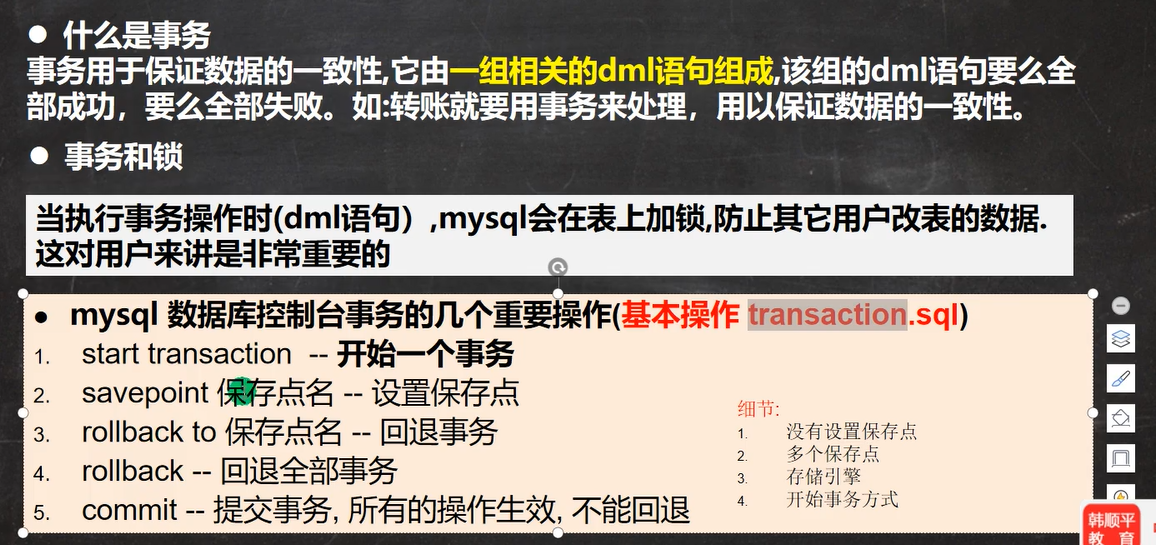 1.如果不开始事物,在默认情况下,dml操作会自动提交,不能回滚