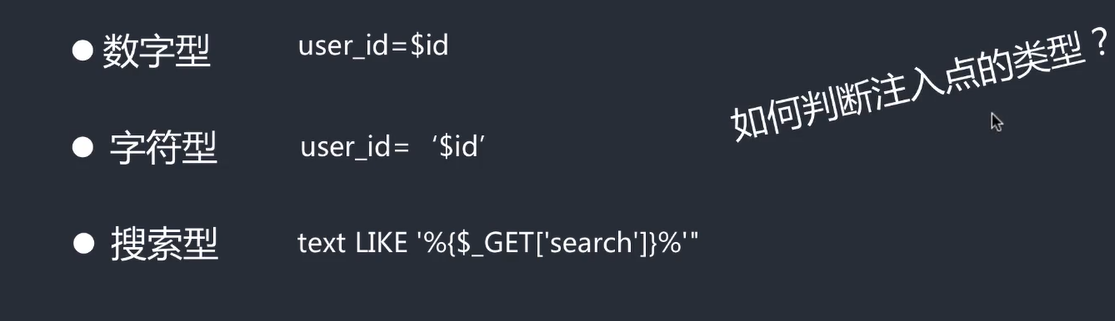 就是和数字型是查不多的,字符型是get请求,但你提交的是字符型的方式,当你用数字型去注入时就不行了,因为是把后面的 都变成了字符,你数据库中就不行了,就用注释把后面的单引号注释调,或者添加
