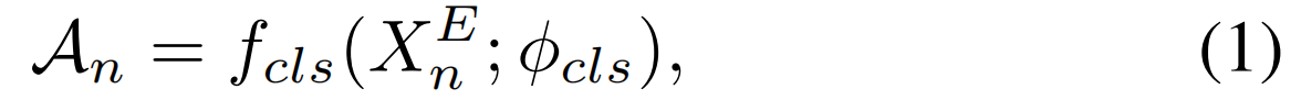 fcls其中包含时间卷积,然后是ReLU激活,φcls是可学习的参数。获得的An∈RT×C表示在每个时间片段发生的动作分类结果。