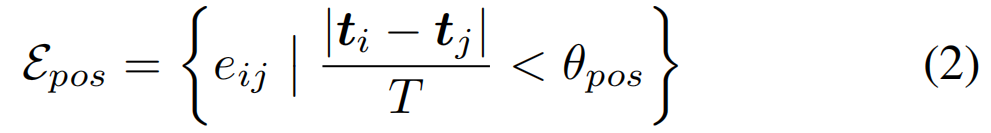 式中,eij:=<mi,mj>是连接mi和mj的边;ti和tj分别是片段mi和mj的时间指数。θpos是一个特定的阈值。通过这种方式,每个片段都会使用其上下文信息进行增强,这显然有助于细化特征表示并提高定位精度。