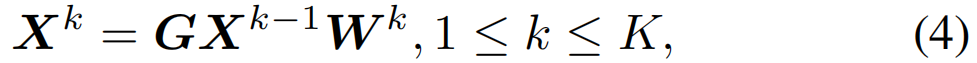 其中Wk∈Rdk×dk是可学习参数矩阵;Xk∈RT×dk是k层上所有片段的隐藏运动特征,X0={mi}Ti=1∈RT ×d是输入运动特征。相邻矩阵G的计算公式如下:
