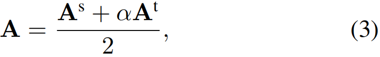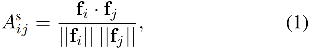 在这里,我们利用两个原始段级特征之间的余弦距离来度量它们的相似性,并通过设置第i个节点和第j个节点之间的边权值(即Asij)来构造相似性图Gs,如下: