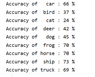classes[i], 100 * class_correct[i] / class_total[i]))
