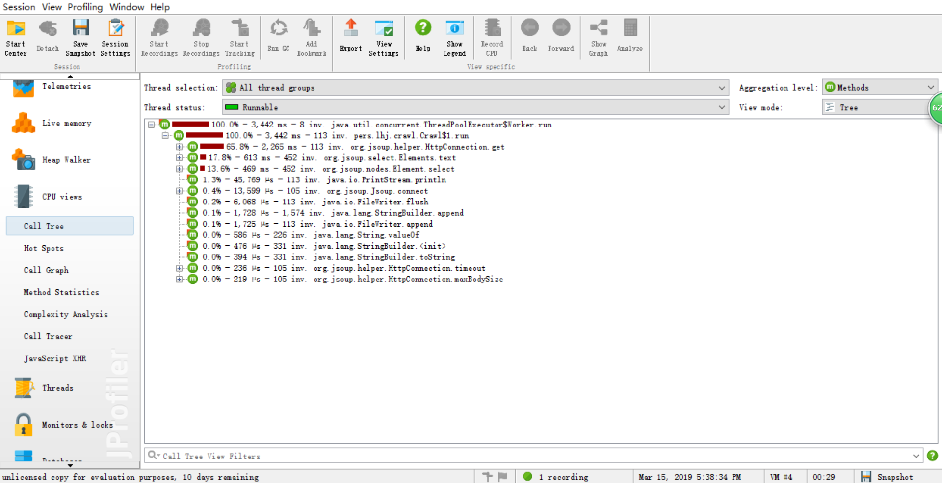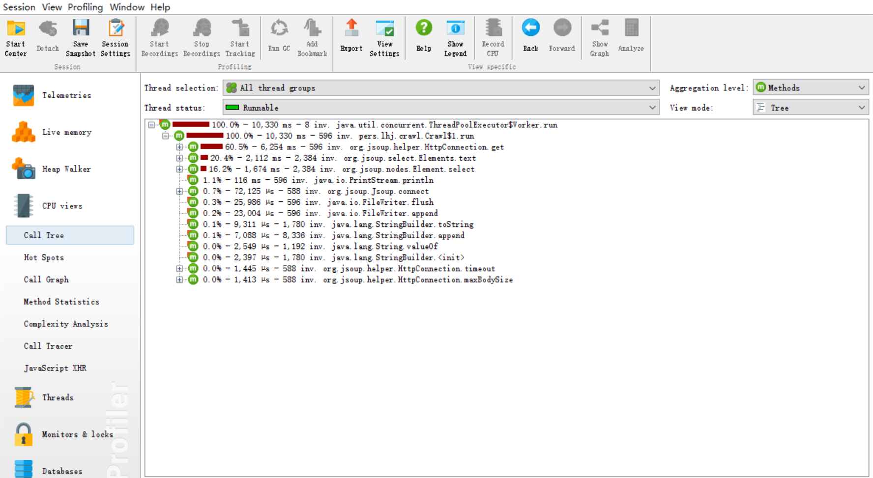 由于能力有限,所以在性能分析中基本需求和进阶需求中的文献统计部分的性能改进的不是很明显,因此这里只展示爬虫部分的 ###关于爬虫程序的性能分析 优化前  优化前各方法耗时  优化后  线程  优化后各方法耗时