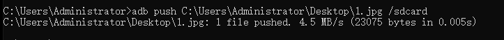 1 adb push C:\Users\Administrator\Desktop\1.jpg /sdcard