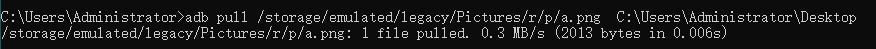 1 adb pull /storage/emulated/legacy/Pictures/r/p/a.png C:\Users\Administrator\Desktop