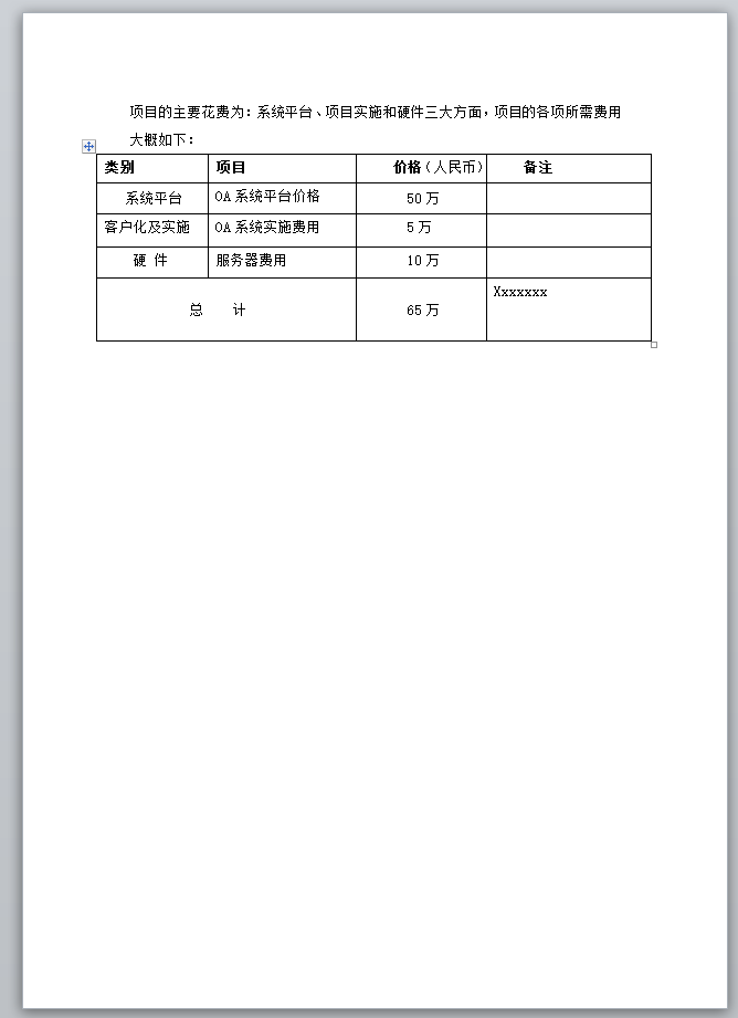 调用PageOffice的Word合并功能,把开发部编辑的项目架构设计文档插入到报告主体文件的数据区域PO_Design中,把财务部门负责制定的财务预算文档插入到数据区域PO_Budget中,生成的最终可行性报告如下图所示: