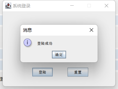 JOptionPane.showMessageDialog(null, "登陆成功");