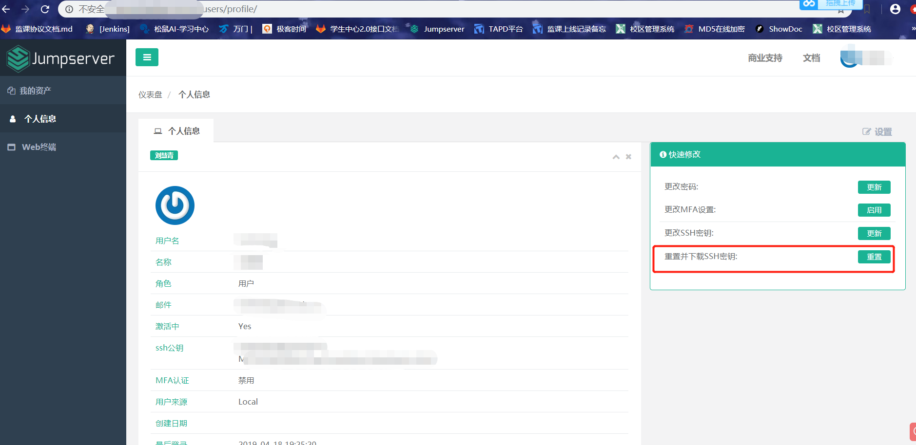 登录web端,在个人信息中有重置并下载SSH密钥,点击下载并奖文件保存到ssh文件夹中