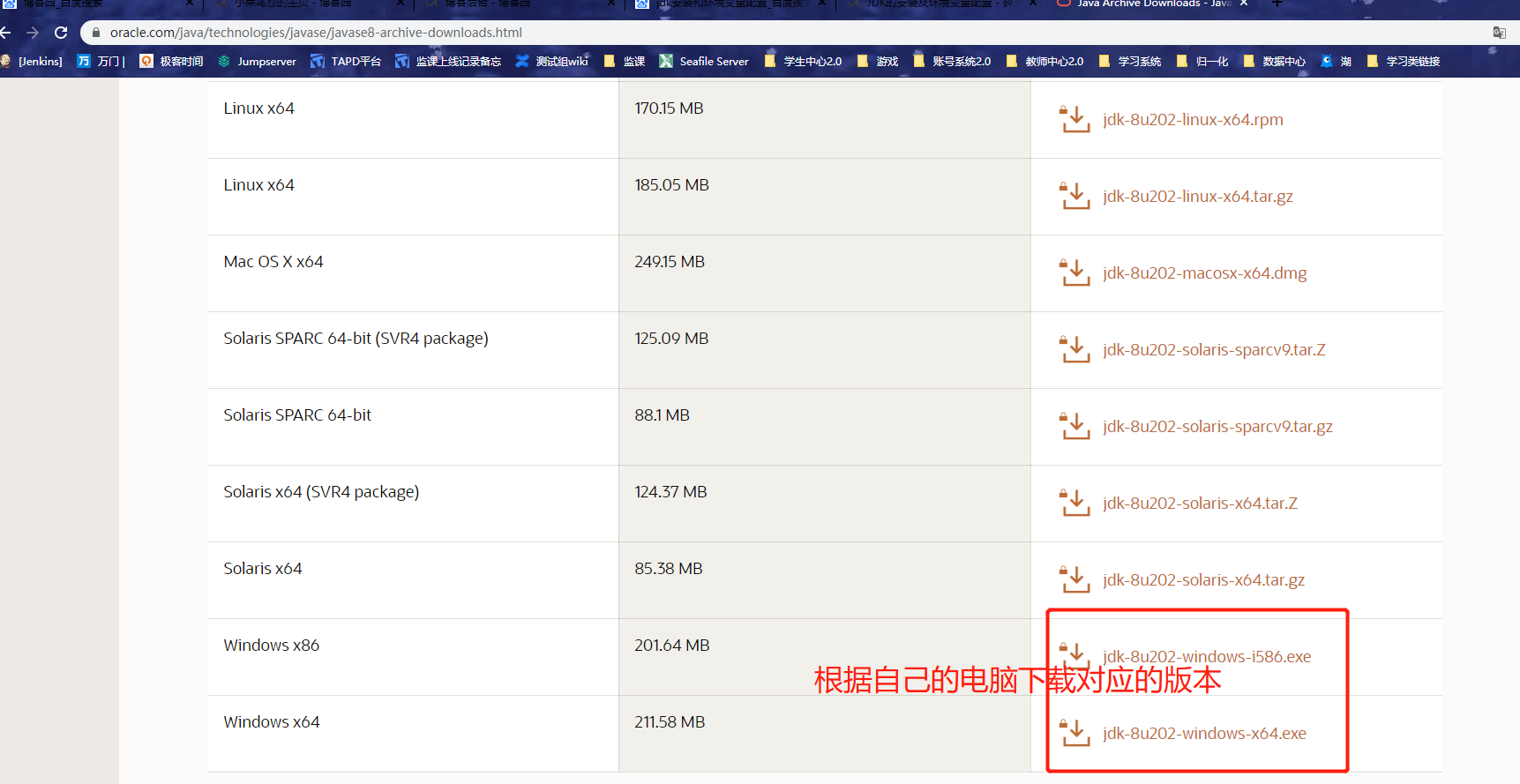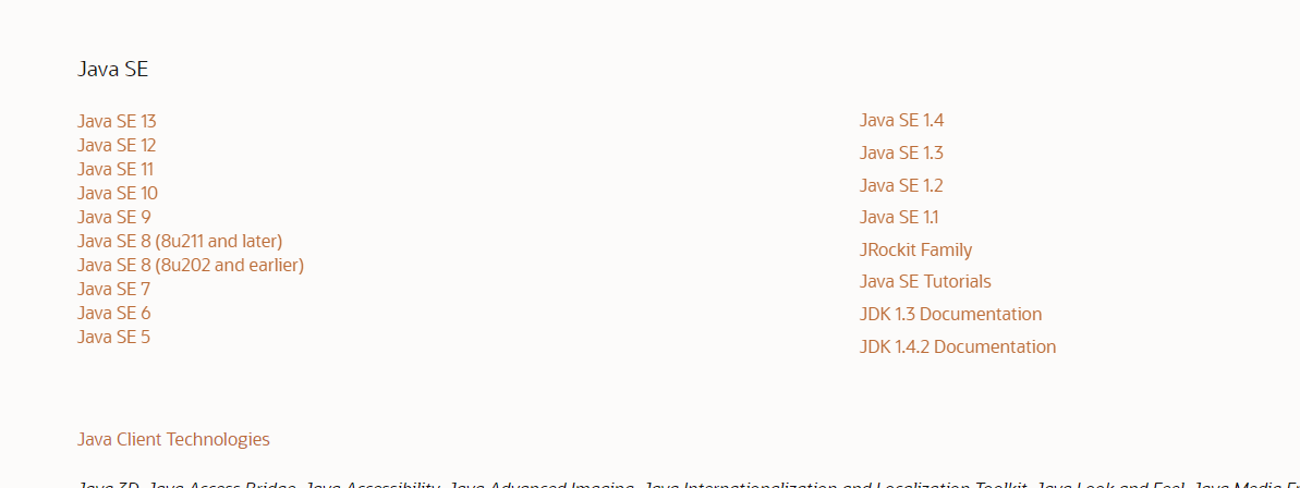 历史版本如下,可根据自己需要选择合适的版本,我下载的是java SE 8(8u211 and later):