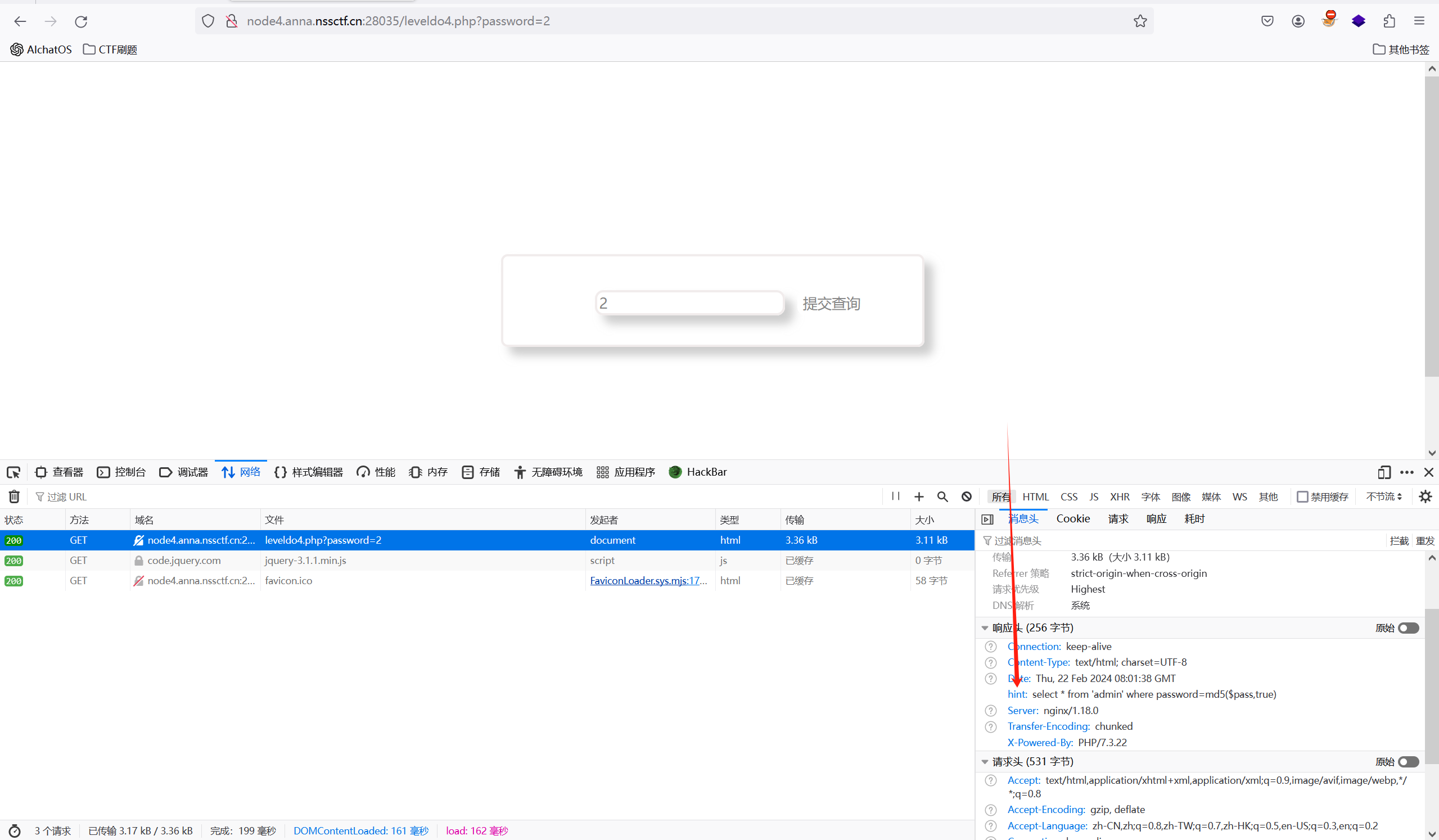 查看源码无果,在f12中的网络功能中发现了其中一个数据包中的响应头中有提示
