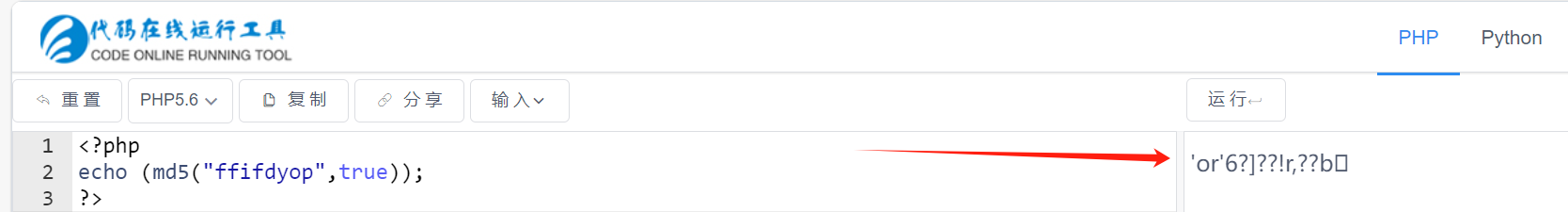 提示为:hint:select * from 'admin' where password=md5($pass,true)