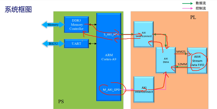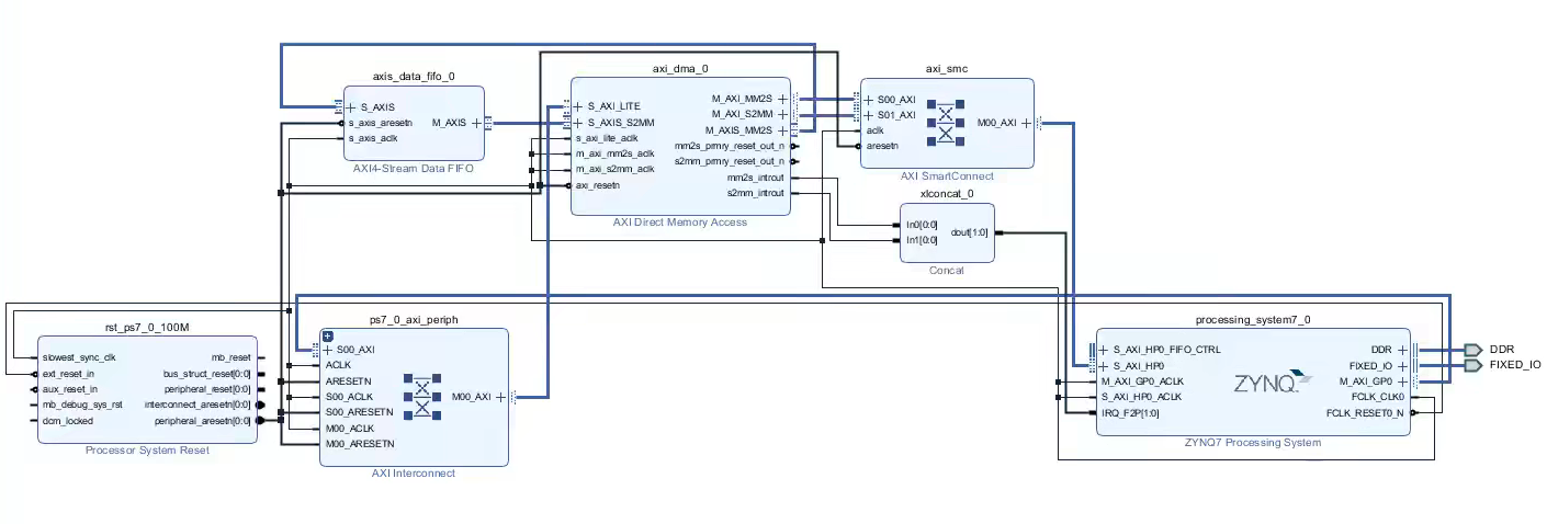 hp AXI-FULL接口进行数据交互,GP接口 AXI-LITE进行对DMA的寄存器配置