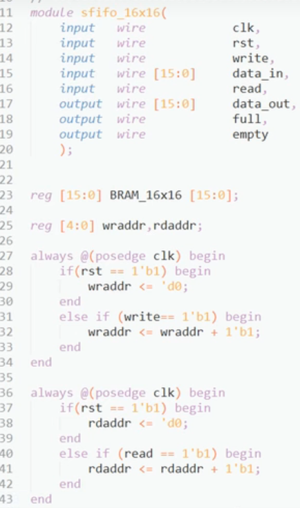 注意,地址深度比fifo深一倍,作为空满判断条件