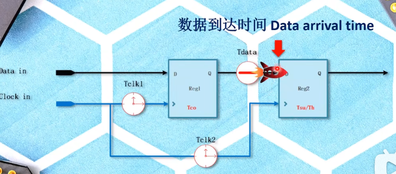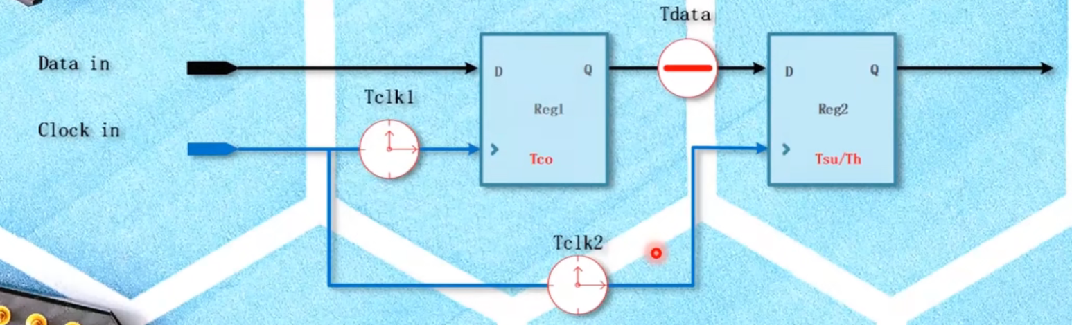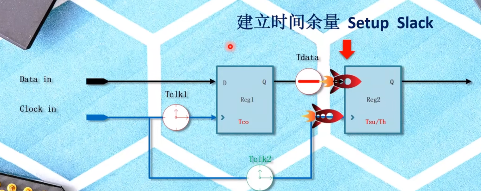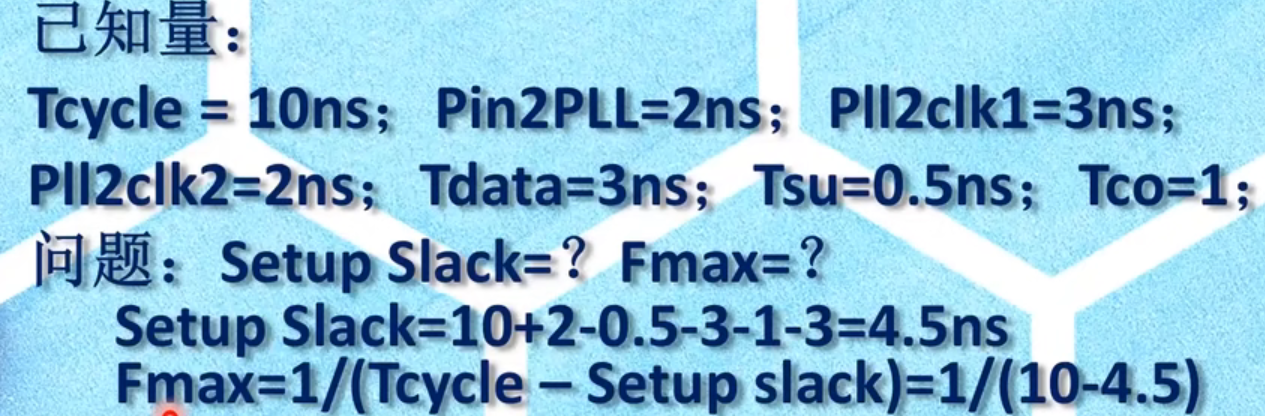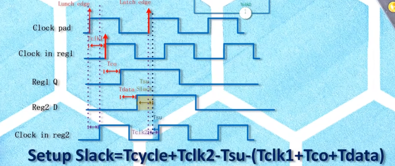 看公式 SETUP SLACK=TCYCLE+TCLK2-TSU-(TCLK1+TCO+TDATA)