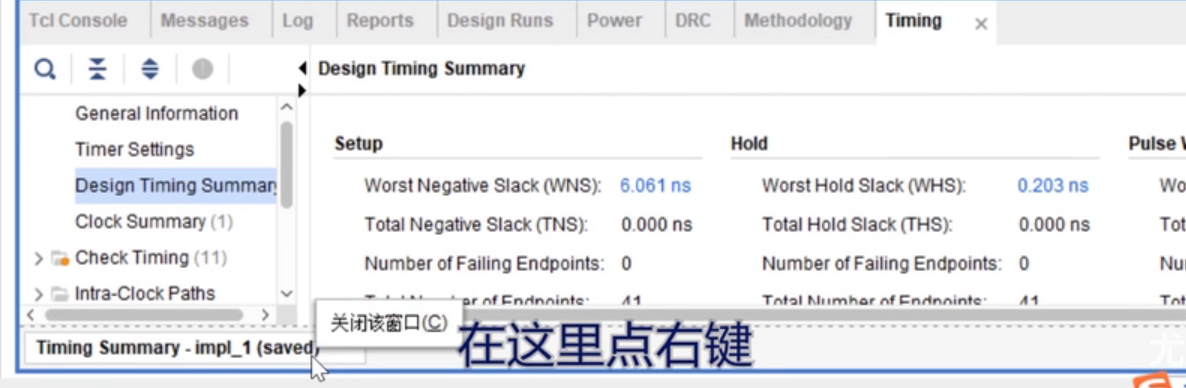 重新生成bit文件之后打开布局布线 更新。有一个timing的报告,会给我们一个总体的summy,总结