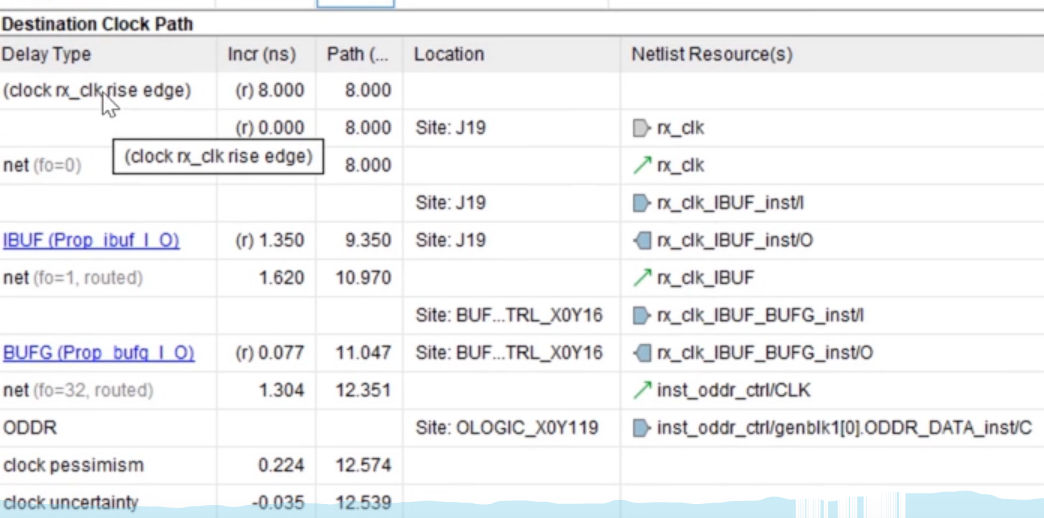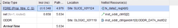 再后面到达Q端,再到ddr寄存器的D端 这个延时是5.634 数据到达时间