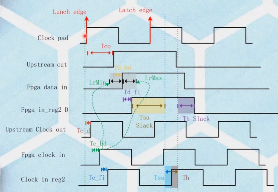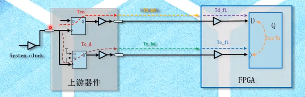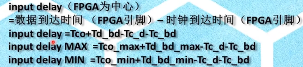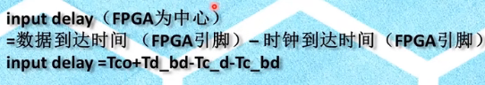 在以FPGA为中心的角度看,只需要知道在引脚位置的时候input delay是多少。发射沿和到达FPGA引脚的数据之间的时间延时的差值 input delay的定义