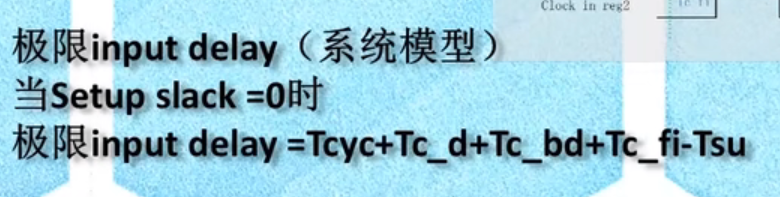 最大极限延时(最大的输入的input delay);发射上升沿,它发射出去的数据经过多少的延时之后才能保证我们的数据能被目的端正确的采集