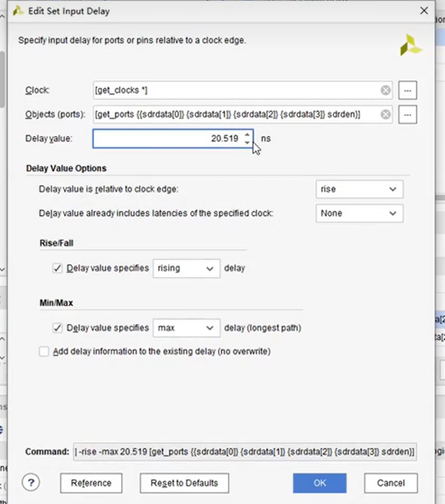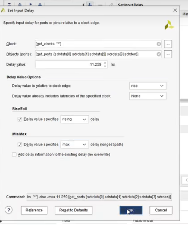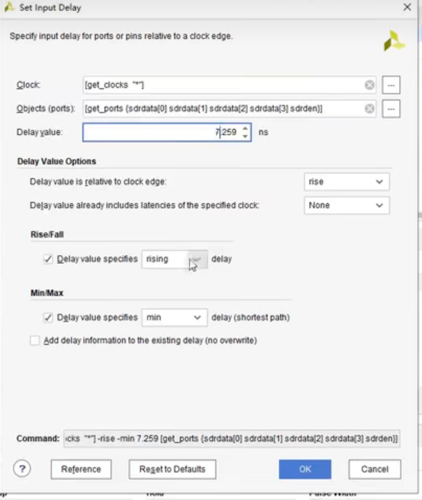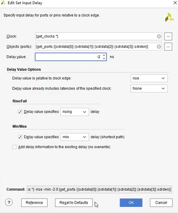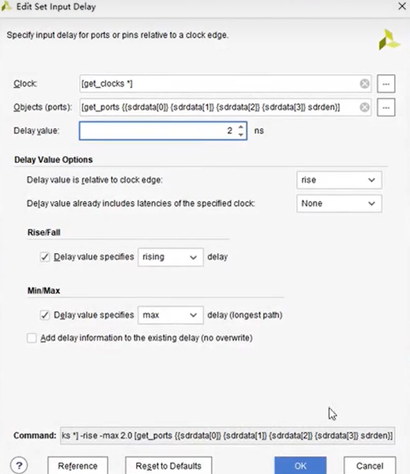 记住发射沿和数据最大最小延时之间的关系,就能进行input delay