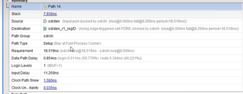 (1/54)=18.52ns 18.52/2=9.259 9.259+2=11.259ns 最大input delay为11.259ns