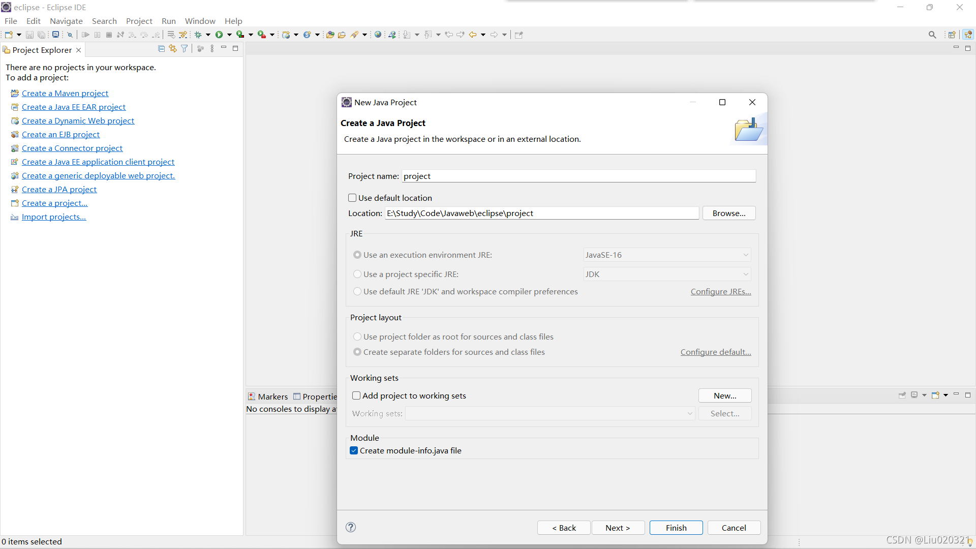 3.随后进入到如下界面,定义项目名称为paoject(随便命名就行)