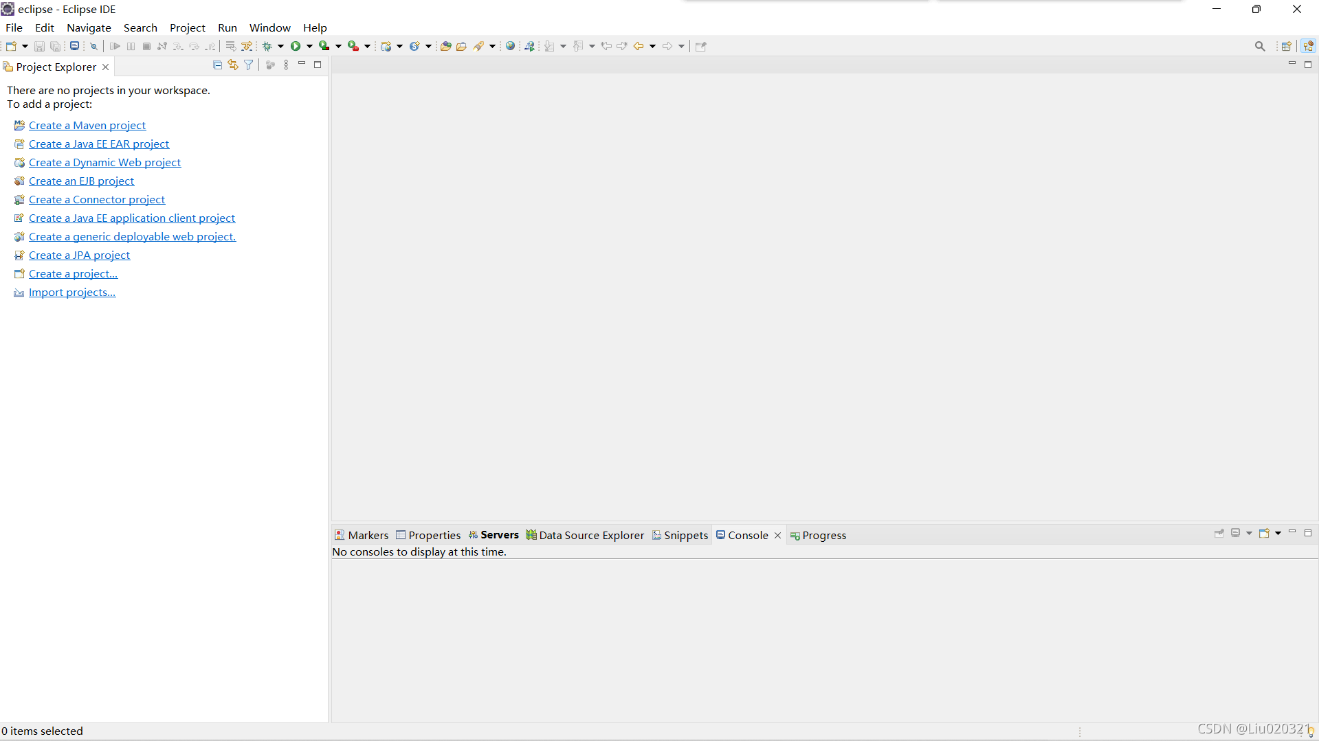 因我下载的eclipse版本是javaweb版本,界面可能与你们略有不同。