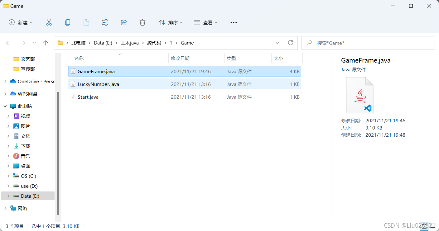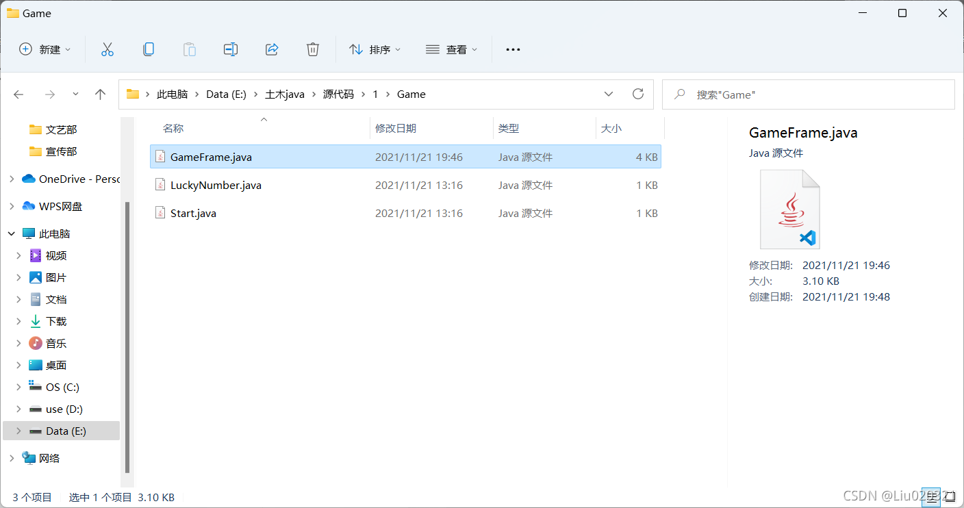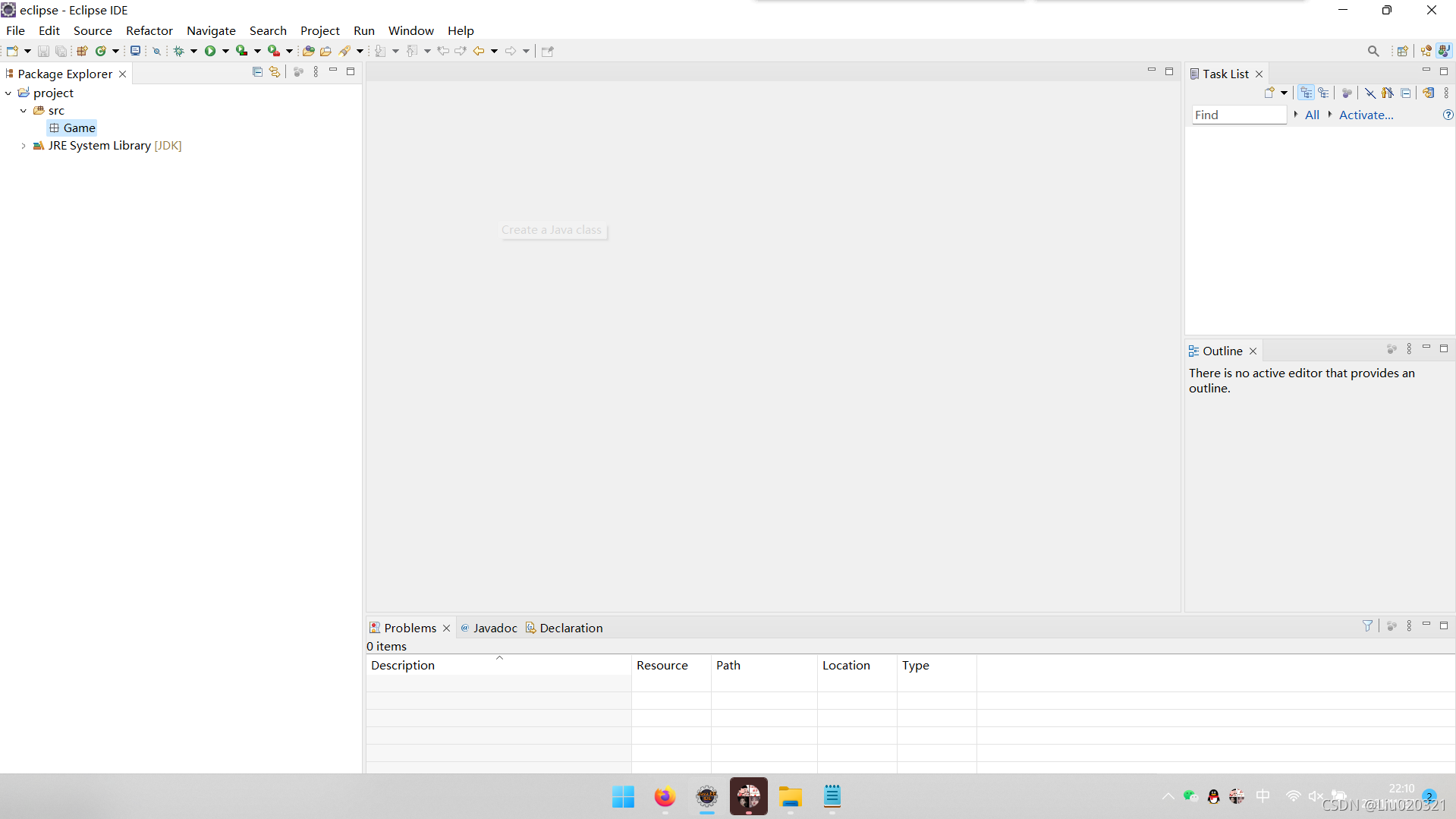 12.建立Java文件的方法是右键包名,我这里是Game,选择new-class