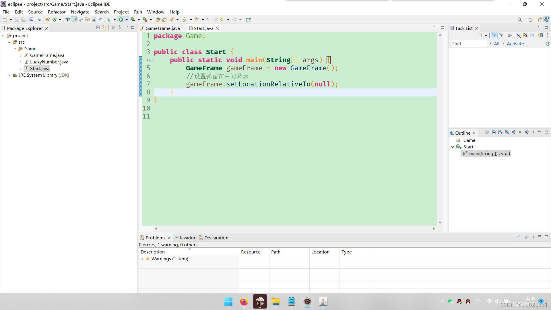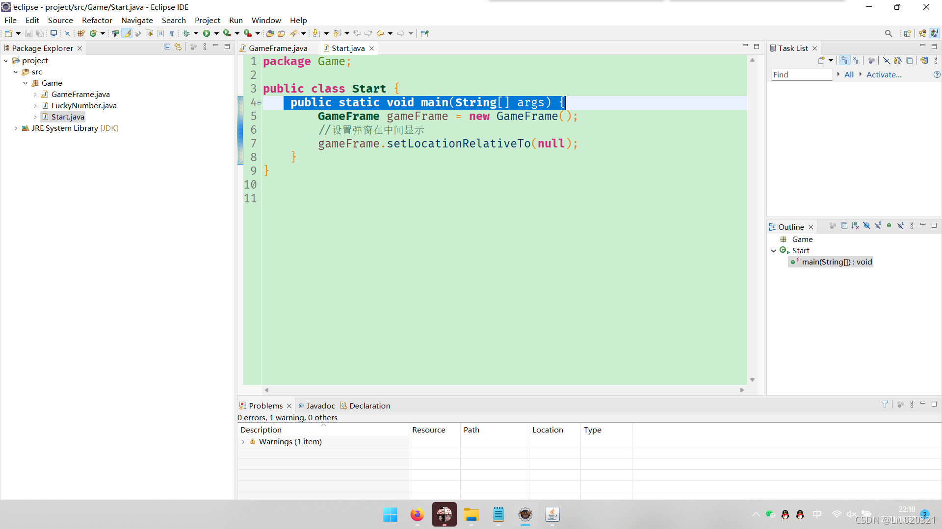 19.找到带有这句话的文件: public static void main(String[] args) {,我这里是在Start文件里