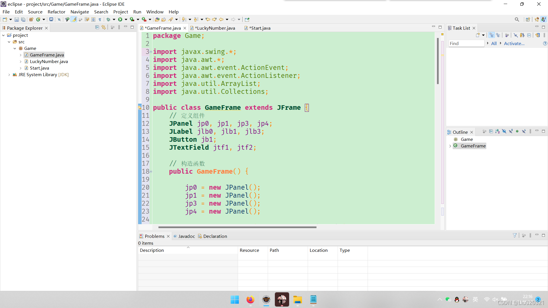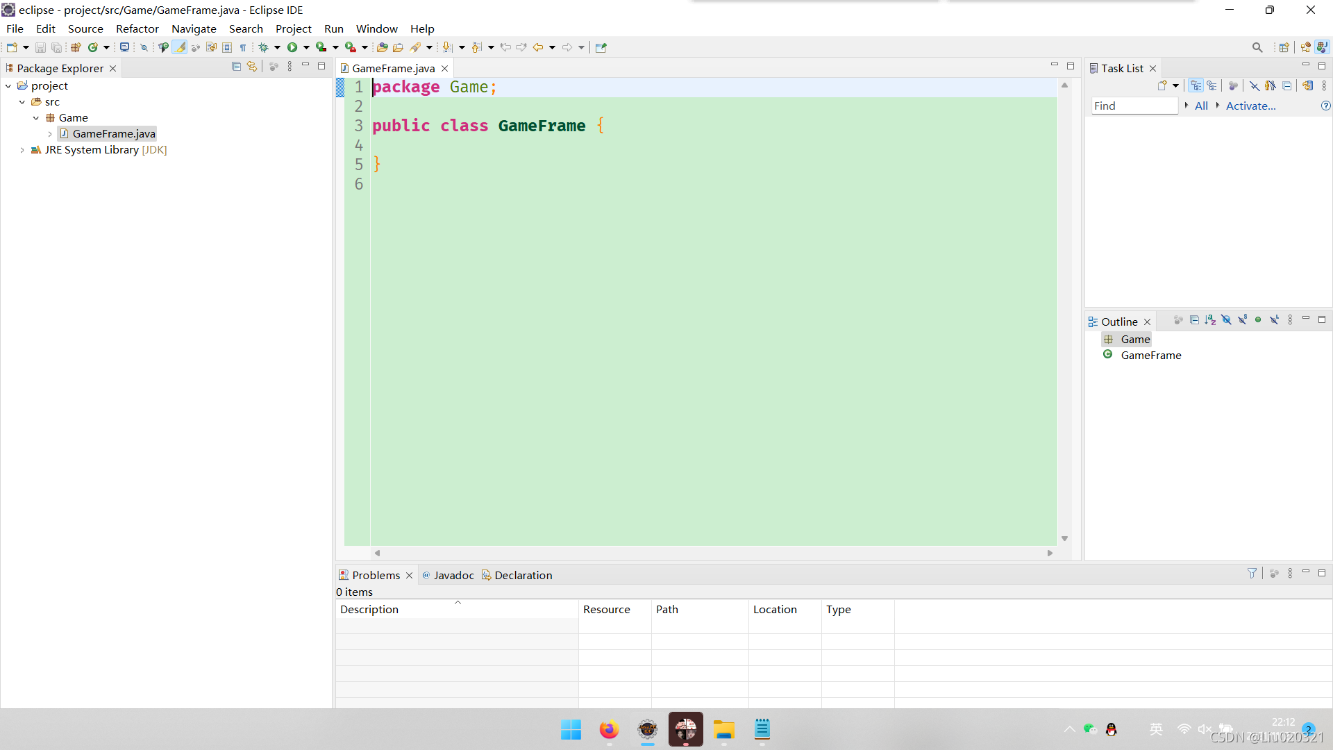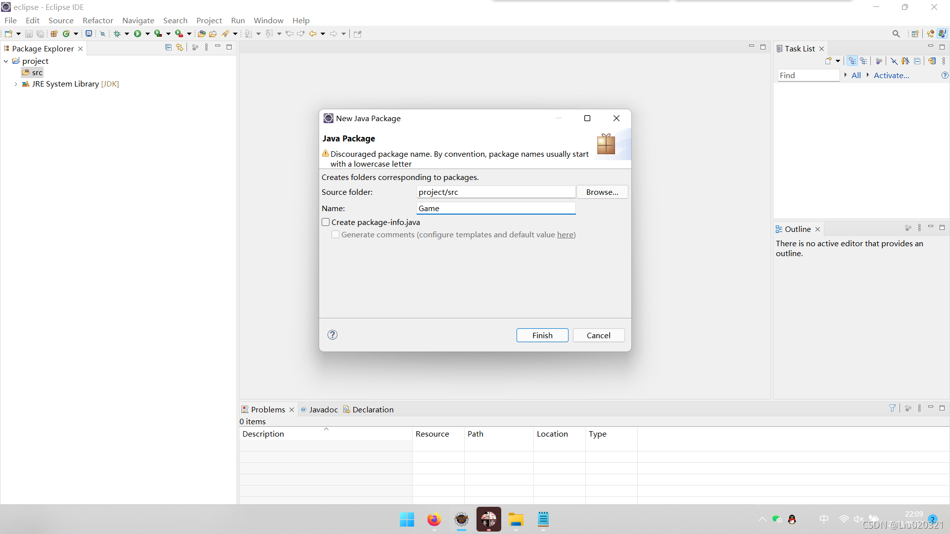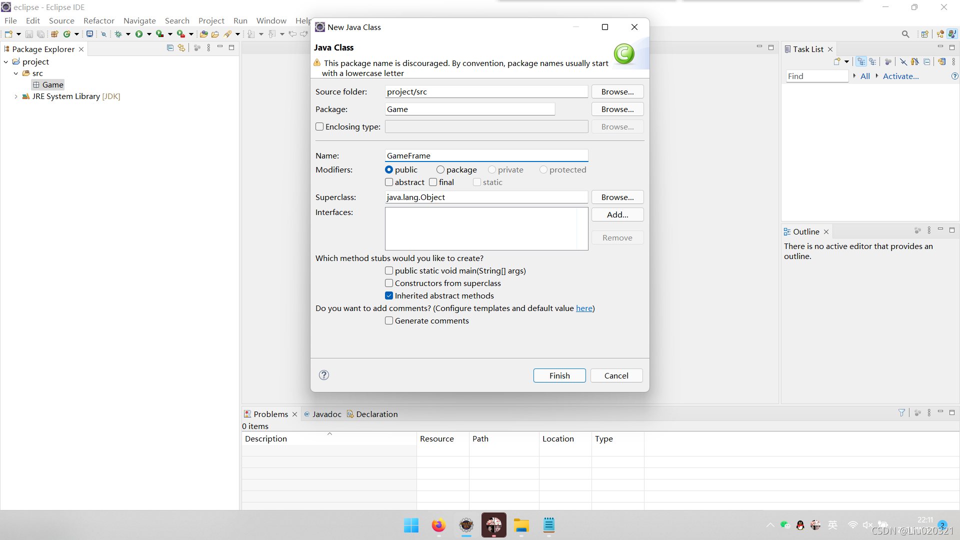 10.点击finish,可以看到Game包已经出现。